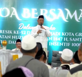 Pemerintah Kabupaten Gresik menggelar doa bersama sekaligus santunan untuk ribuan masyarakat di Masjid Agung Gresik, Senin (9/3/2026) sore.