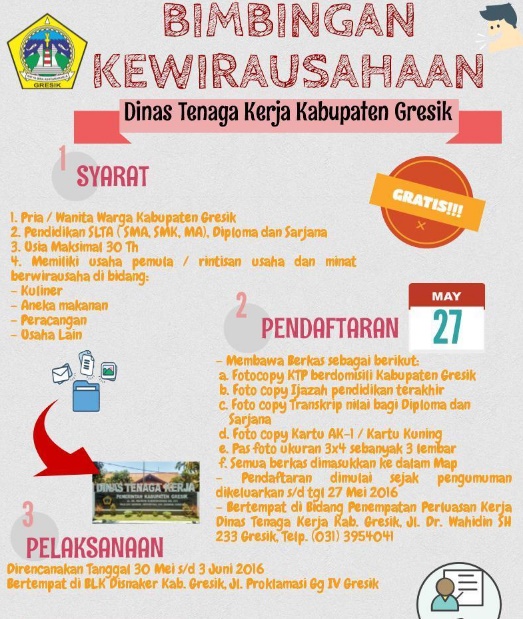 Bimbingan Kewirausahaan 2016, Dinas tenaga kerja kabupaten Gresik