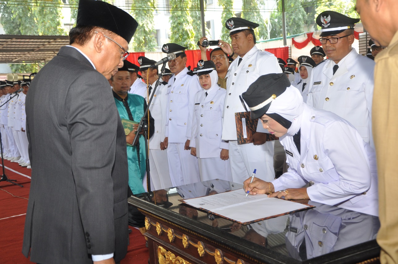 Ruang pelantikan didesain dengan alas karpet merah. Di sekelilingnya dibalut kain merah-putih. Para Kades tersebut mengenakan seragam resmi. Yakni, sepatu hitam serta atasan dan bawahan putih dengan bertopi. Senyum mereka sering mengembang. Maklum, setelah mengalami ’’ketegangan’’ dalam menghadapi pilkades, kini mereka dilantik.