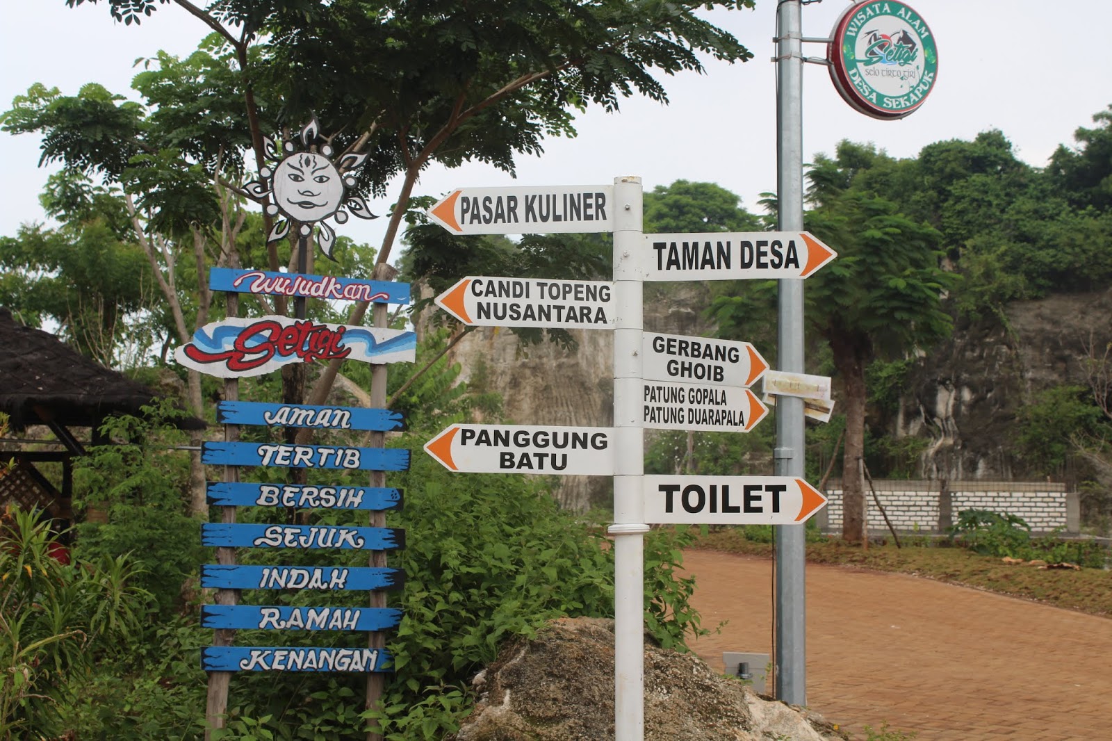 Namun jangan khawatir sebentar lagi akan diluncurkan destinasi wisata Setigi  Ujungpangkah. Setigi sendiri berasal dari singkatan Selo, Tirto, dan Giri. Selo berarti batu, Tirto berarti air, dan Giri memiliki arti bukit.    Alamat Wisata Setigi   Obyek wisata ini berada di Desa Sekapuk, Kecamatan Ujungpangkah, Gresik. Terletak 27 kilometer dari exit Tol Manyar, dan dapat ditempuh dengan kendaraan roda empat selama 40 menit.